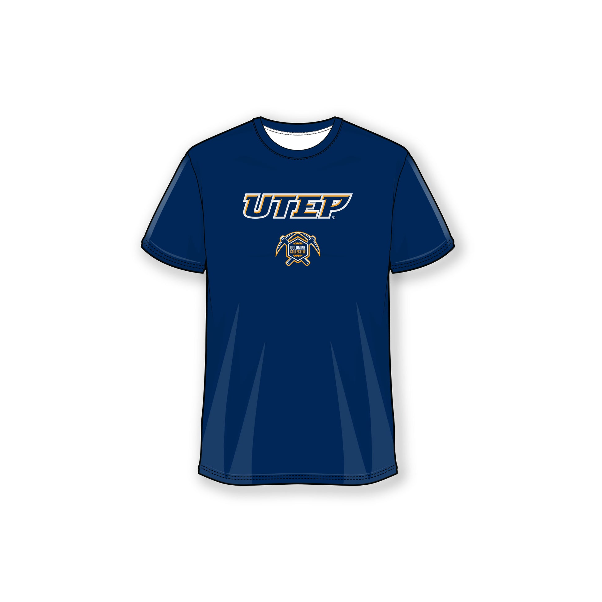 This Blue or White T-shirt has the Goldmine Collective and UTEP front and center on the T-shirt.