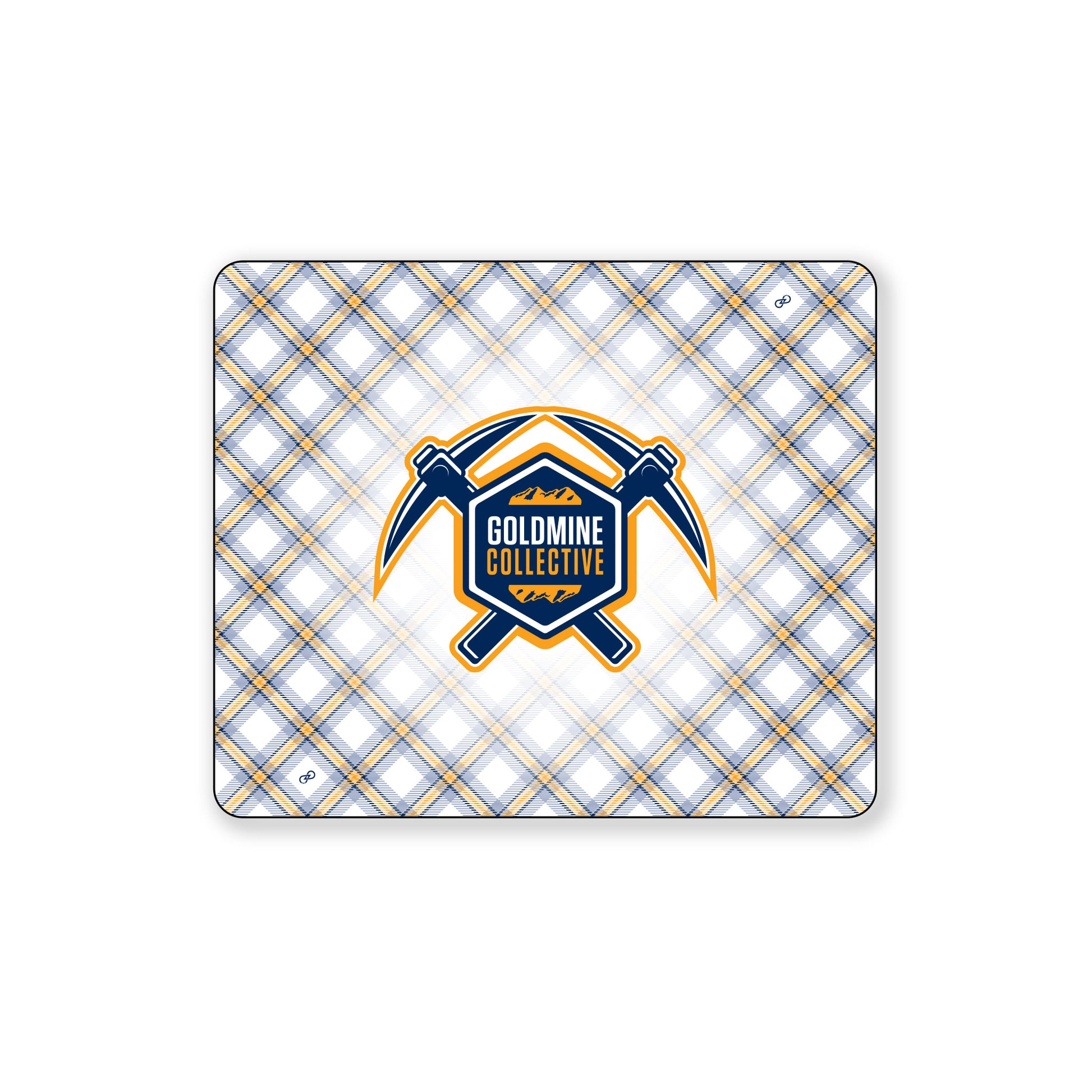 Show your support for the Goldmine Collective with this cozy white plaid Sherpa Blanket.